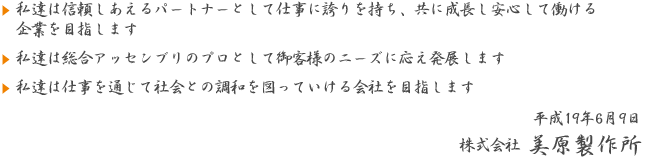 企業にも思いの高さを求められている時代を迎えて、私どもはアッセンブリ・ラインを万全に整えております。次の時代にも、産業の新しい復権の一翼を担いたいと願っております。